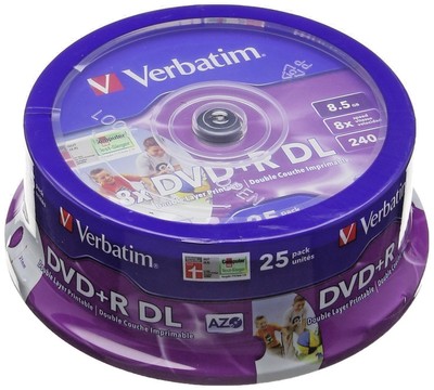Verbatim Dvd Double Layer Dvd R Dl 8 5 Gb 240 Min 8x Full Printable White No Id 25 Pieces In Cakebox