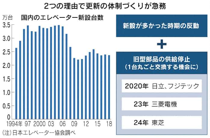 エレベーター 2020年問題 設備更新ピーク 日本経済新聞
