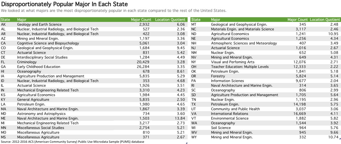 The Most Disproportionately Common Majors In Each State Zippia