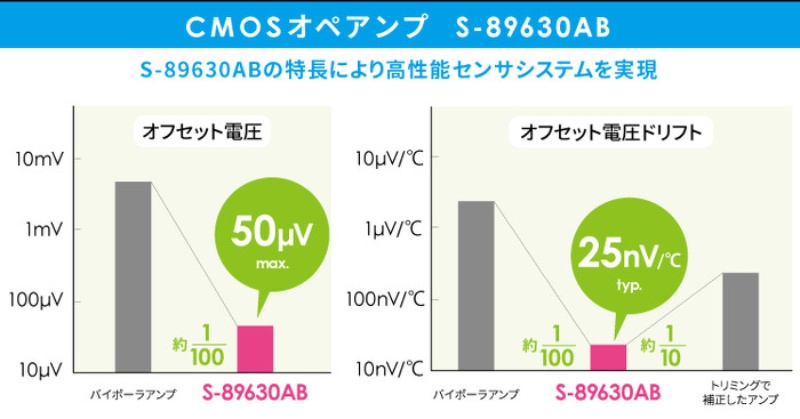 入力オフセット電圧を50mvに抑えたオペアンプic エイブリックが4 36v